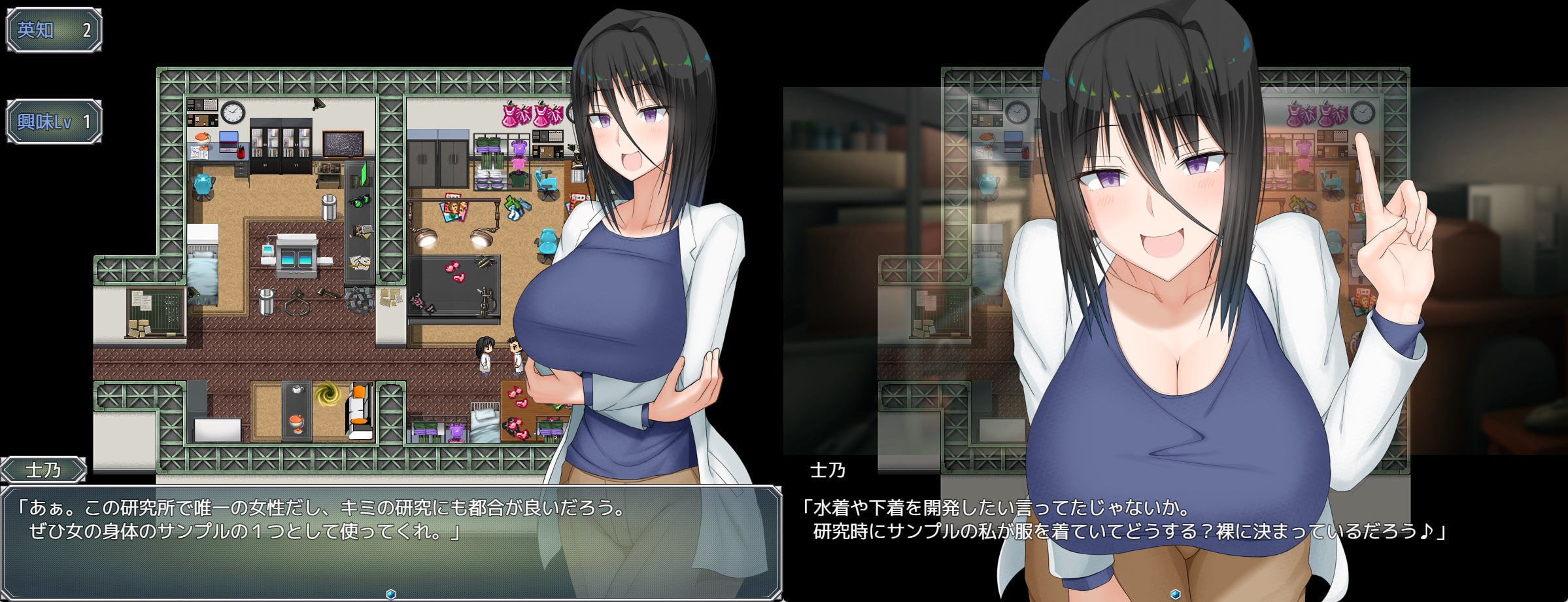 主人公である水無月 士乃は研究以外に無欲な爆乳研究員